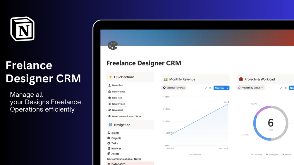 The Freelance Designer CRM β Premium is a complete Notion system designed specifically for freelance designers who want to organize clients, projects, and payments in one sleek workspace.